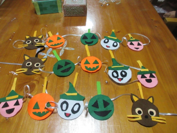 今日の手工芸は、ハロウィンのガーランドをつくります🎃