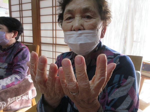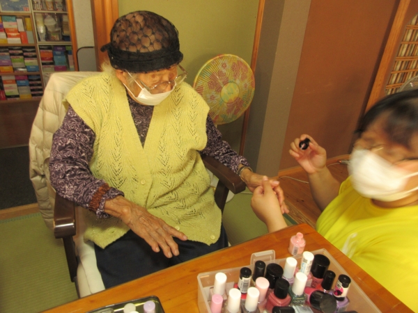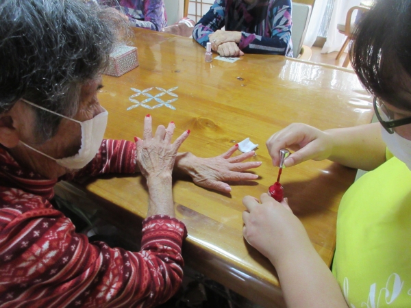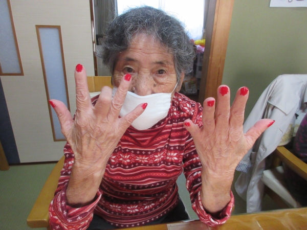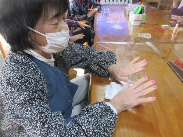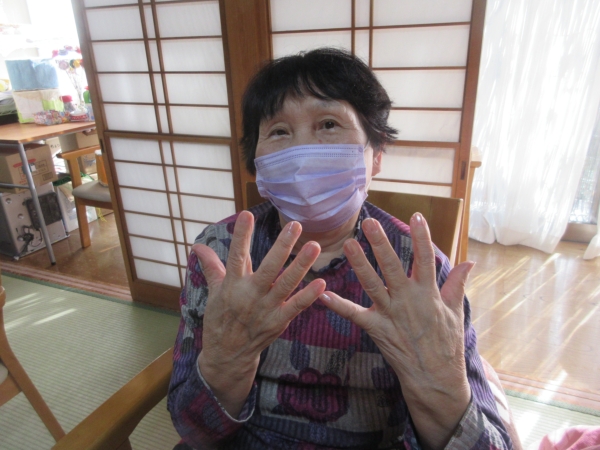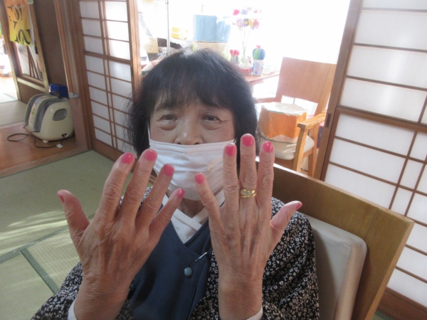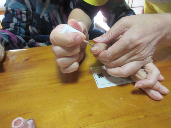 母は薄いピンク色のマニキュアを塗りました