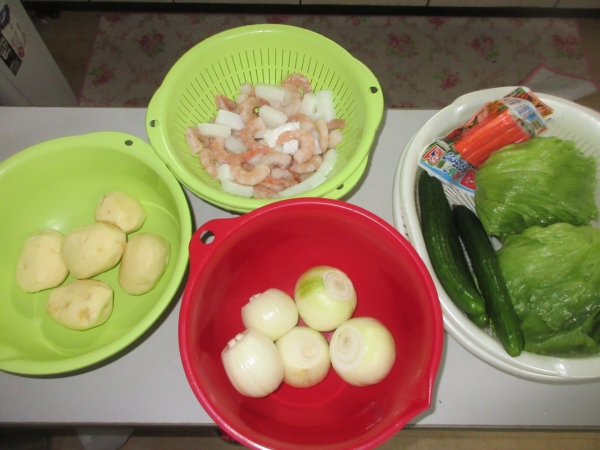人数分に割り振りカニカマも添えます
