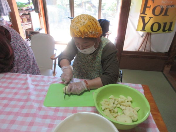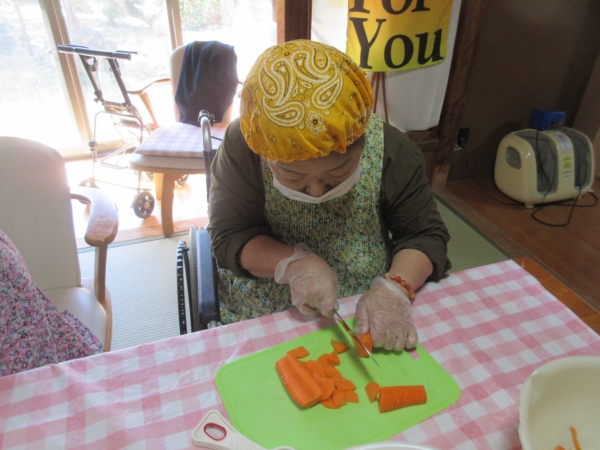 人参は いちょう切りにして味噌汁の具材の用意です