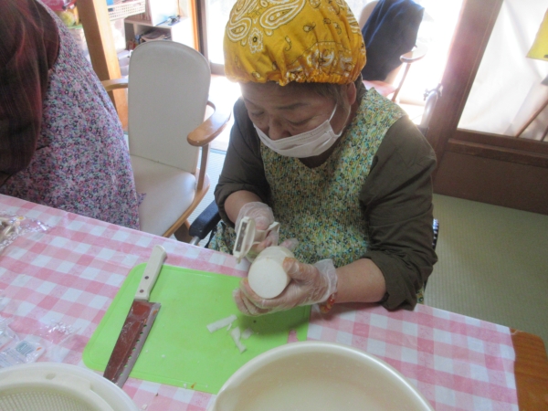 大根は皮をむきカットします
