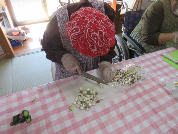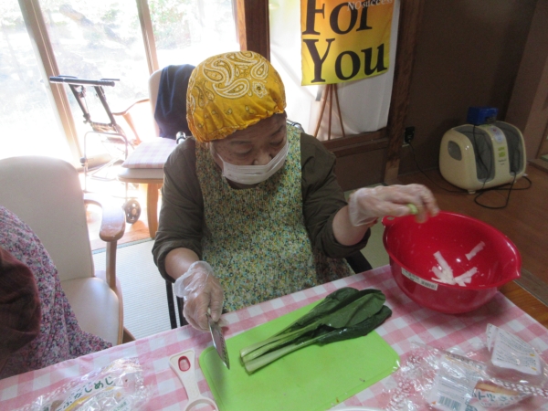 小松菜も細かくカット