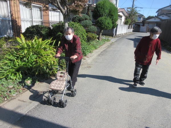 歩ける方は機能訓練兼ね日光浴しましょう