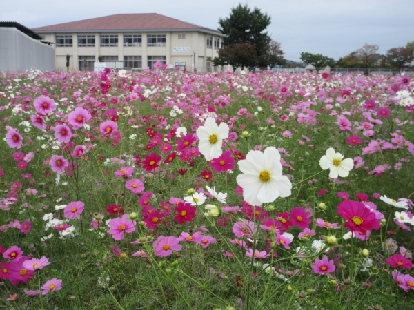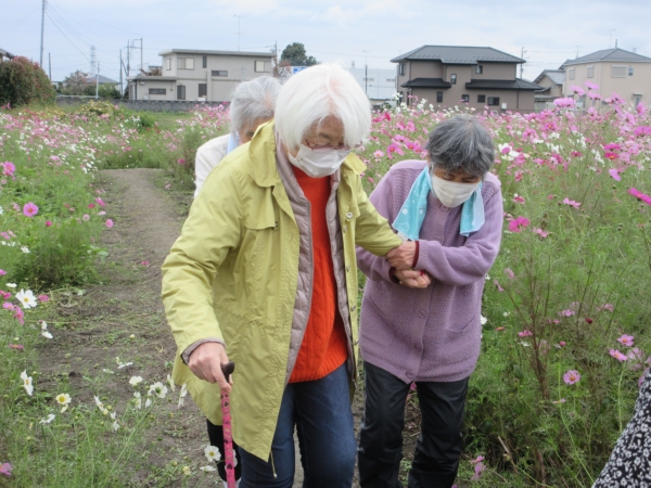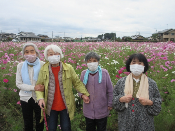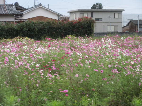 幸せの幸望庵のすぐ裏に咲いているコスモスのお花を見に行きました
