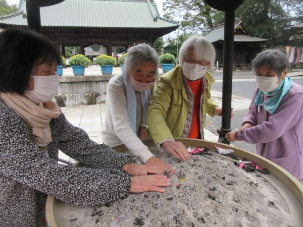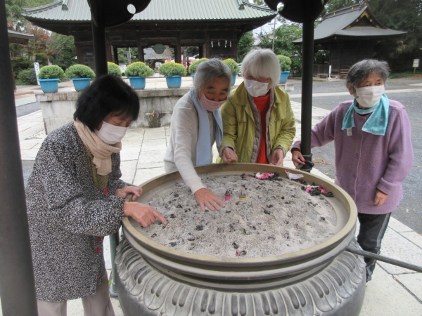 お線香立てのところは暖かく母達は思わず暖をとりました