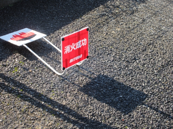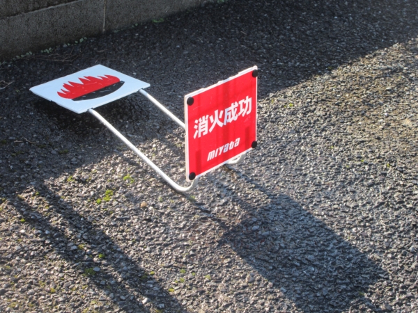 炎のマークめがけて、ポンプのノズルを抑え噴射します。
