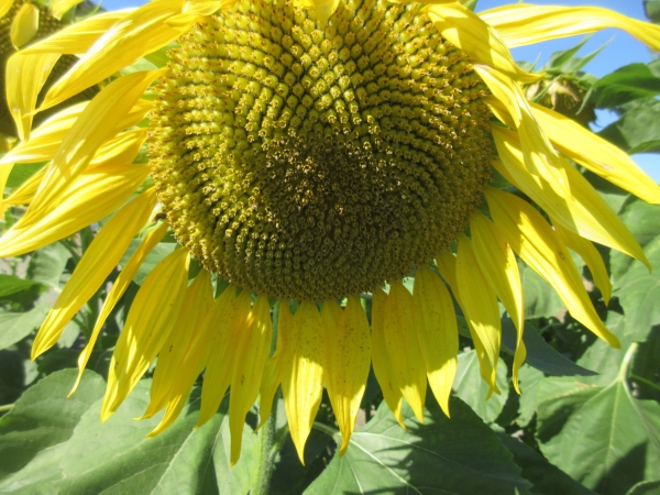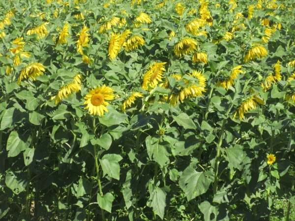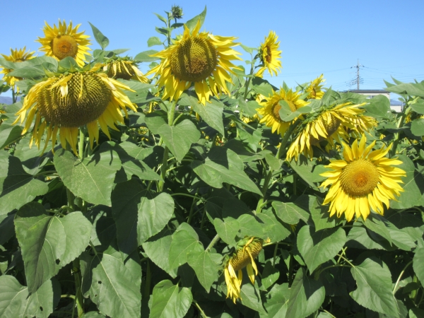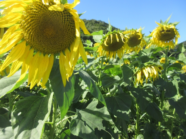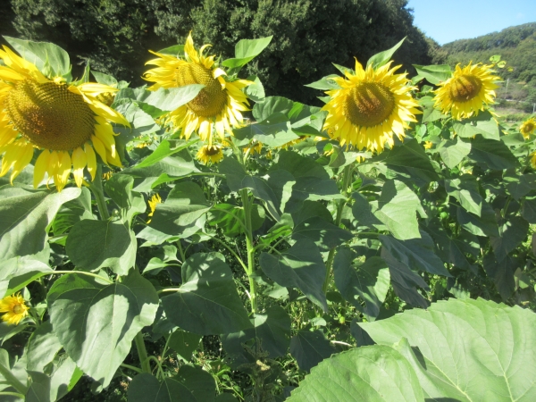 青空の中一面の黄色と緑のコントラストがとてもまぶしかったです。