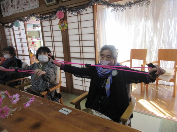 ゴムで適度に負荷がかかり、身体に無理がなくお手軽な体操です。