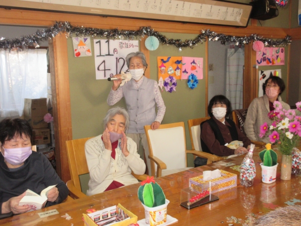みんなで「ぼけたらあかん」を唱和して体操をします。
