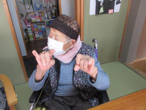 親指と中指・薬指をくっつけて、指でキツネを作りましょう