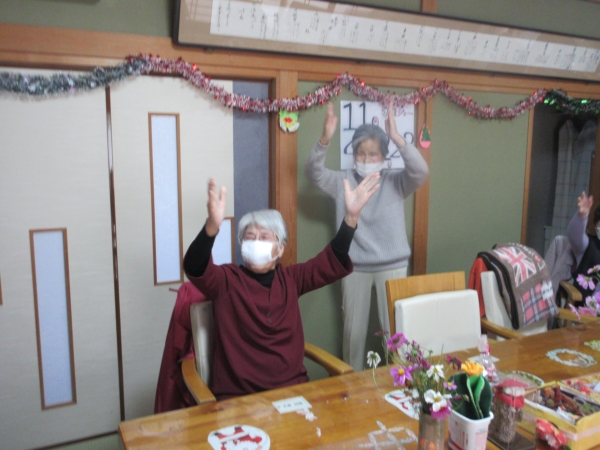 お昼ご飯をいっぱい食べたのでレクに入る前に体操を行います。