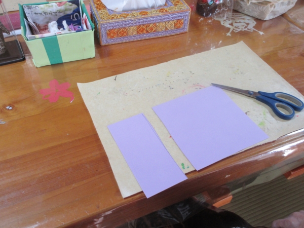 色画用紙が配られ、ご自分の好きなカラーから選びました。