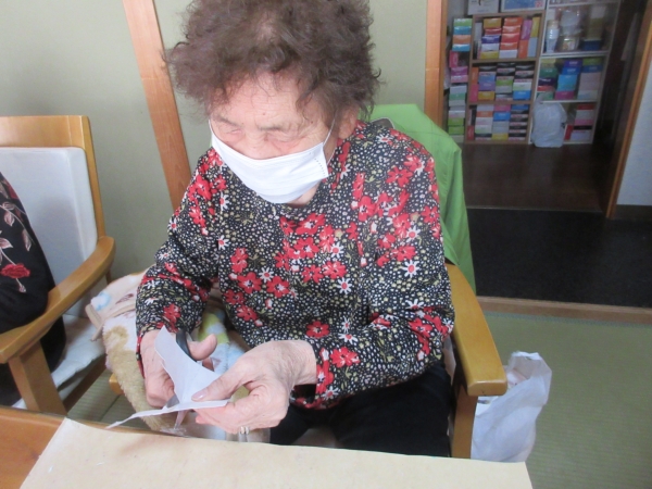 本日のレクは、幸せの幸望庵恒例の手工芸です。
