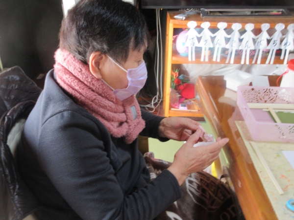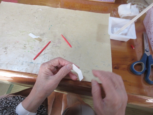 「手がベタベタ・・・・」おしゃべりをしながら作業が進みます。