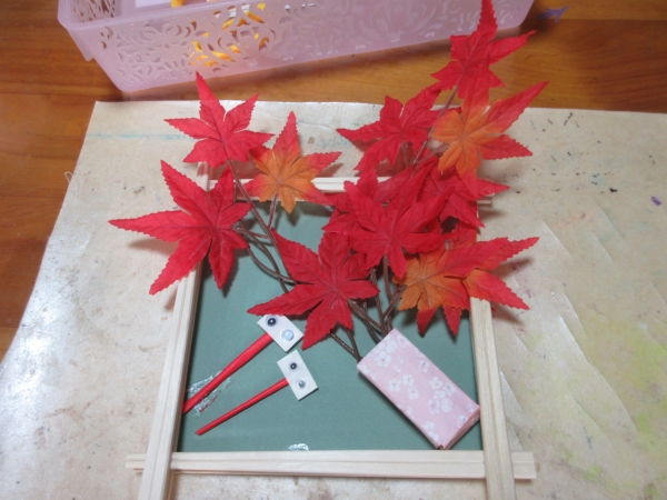 トンボに目玉を付けたら、紅葉の隣に飛ばしていきます