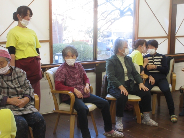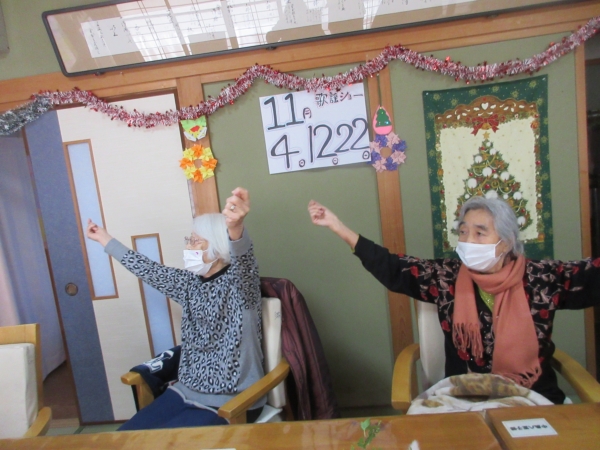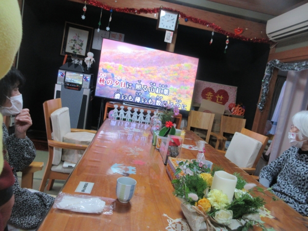 口腔体操として「もみじ」と「夕焼け小焼け」を合唱します。
