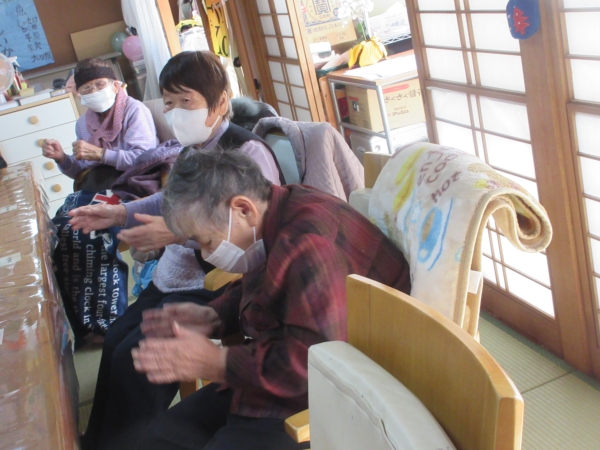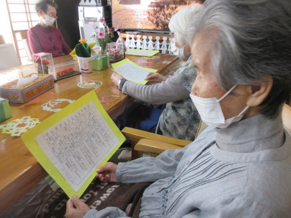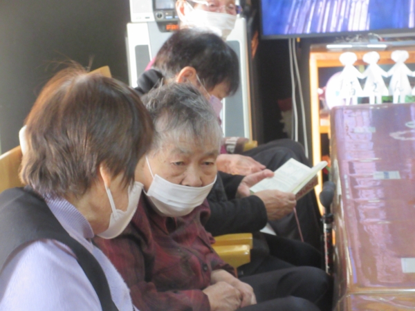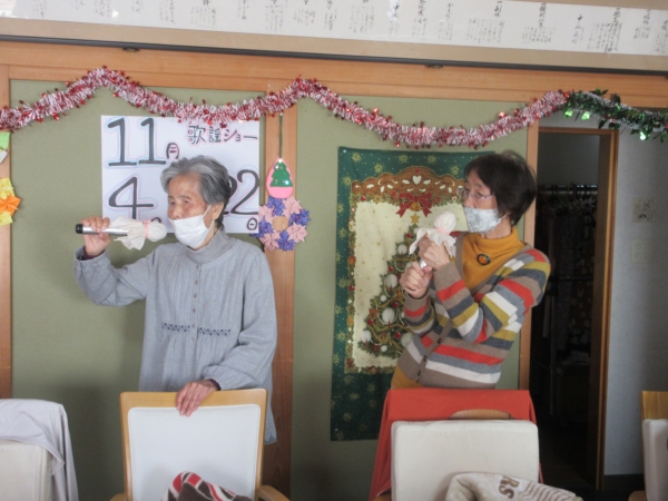お昼ご飯の前に口腔体操を兼ねてカラオケを行いました。