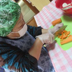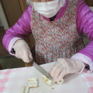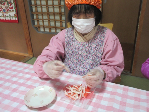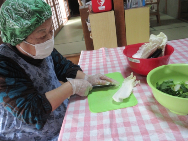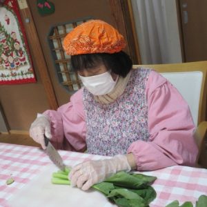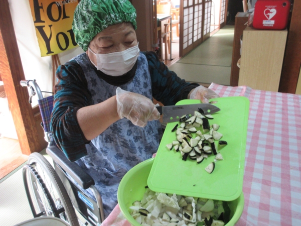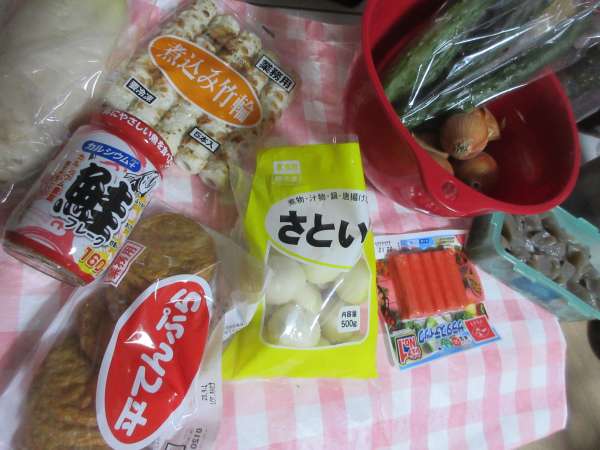 さつま揚げやこんにゃくと一緒に煮物を作っていきます