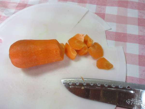 人参は乱切りに、竹輪は食べやすい大きさに切って