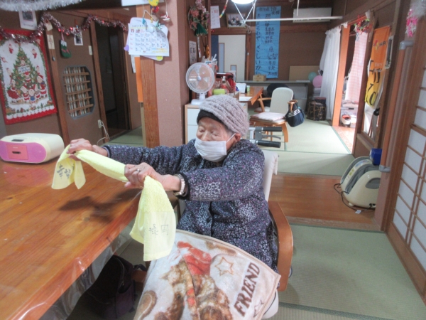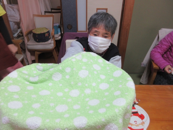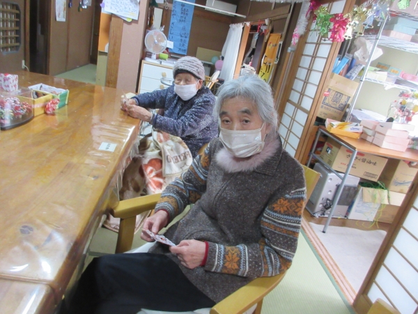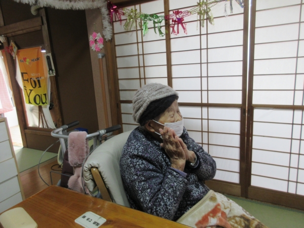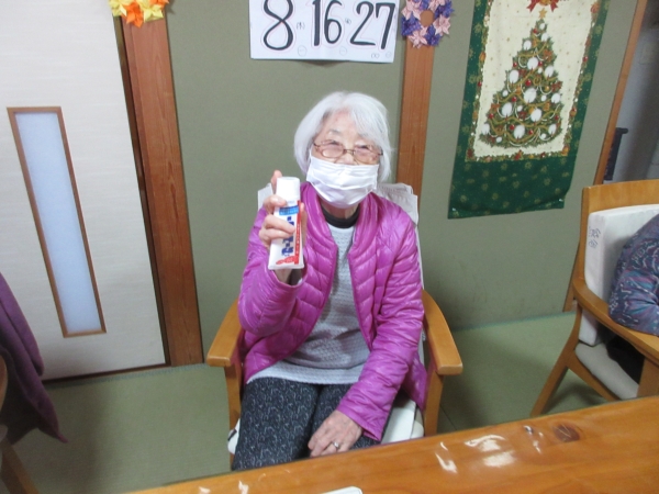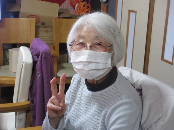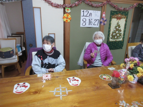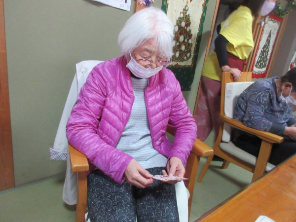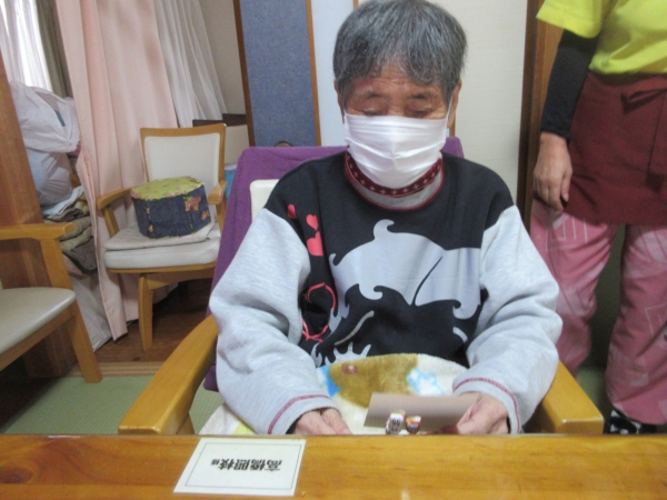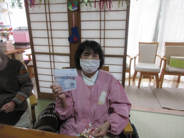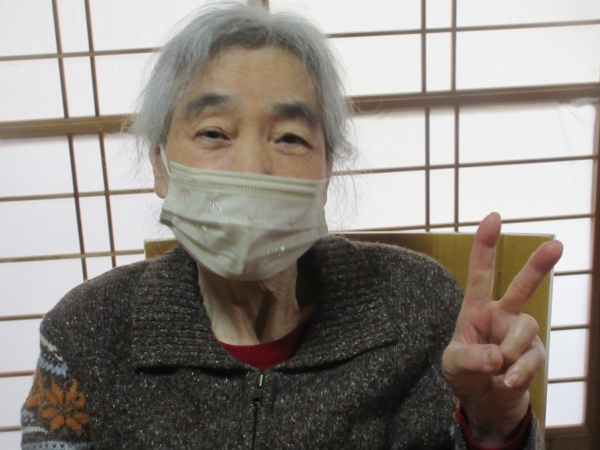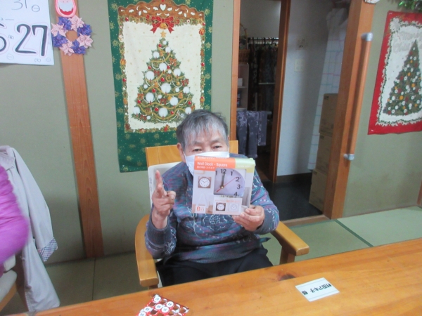 一番にビンゴになった母。