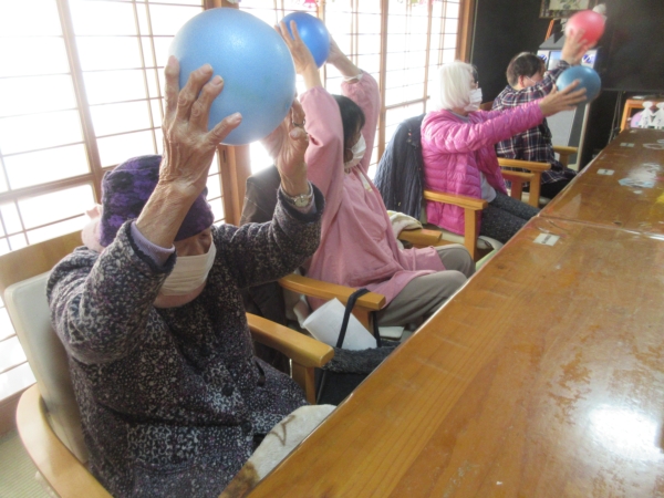 午後のレクはボール体操です