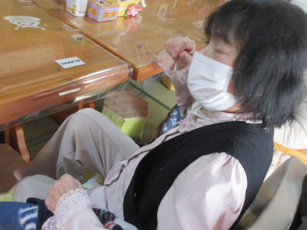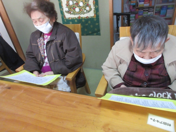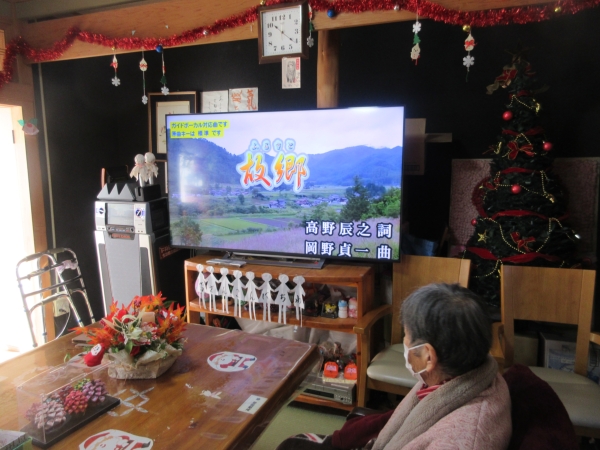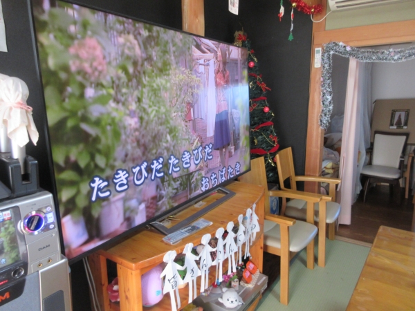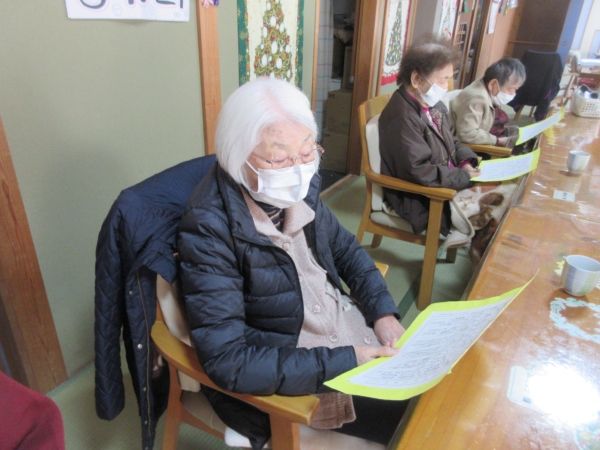 口腔体操を兼ねて「たき火」と「故郷」を合唱します🎶