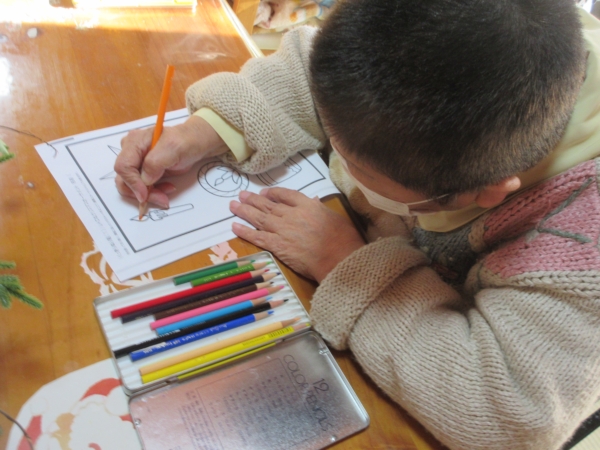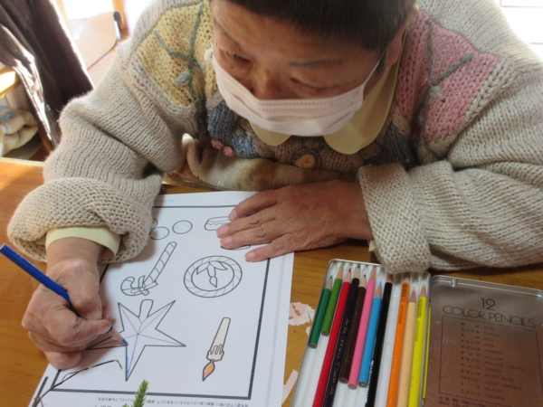 「何色で塗ろうかな?」と悩みながらぬる母。