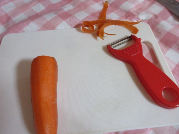 人参は、ピューラーで皮をむき、