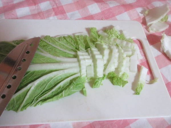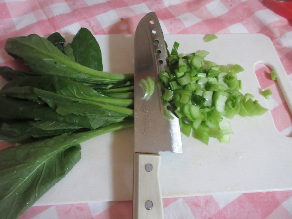 小松菜は食べやすいい大きさに切って🔪