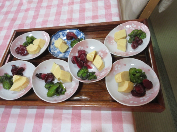 付け合わせの漬物等を盛り付けます。
