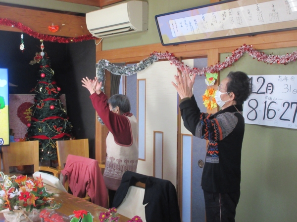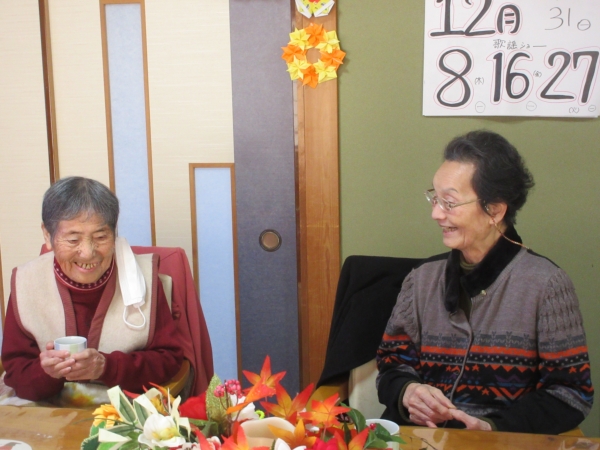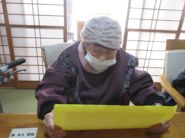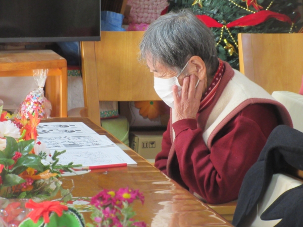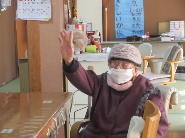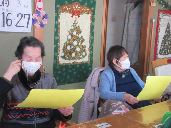 口腔体操を兼ねて「たき火」と「故郷」を歌います