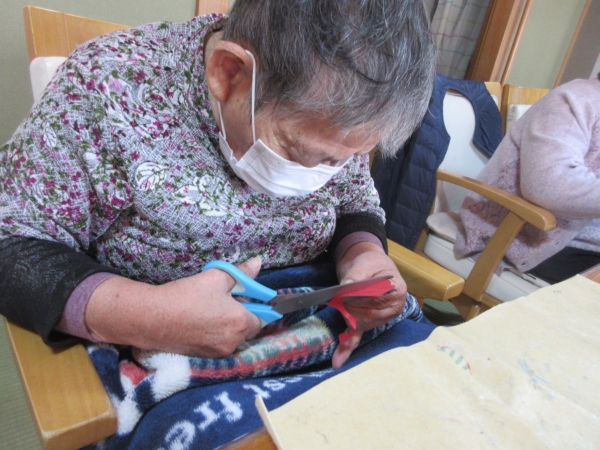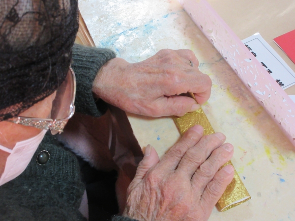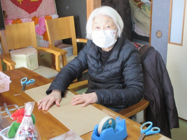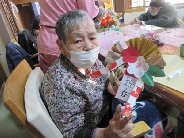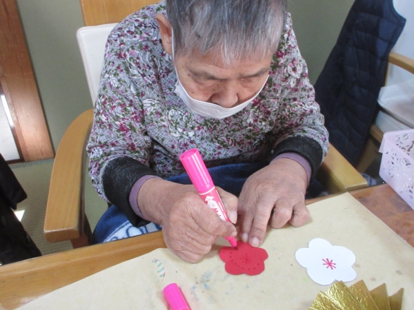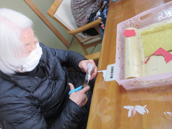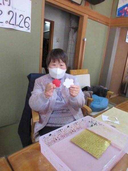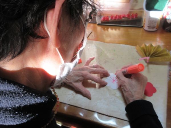 「紅白の梅の花切れたよ」と見せてくれた母達。