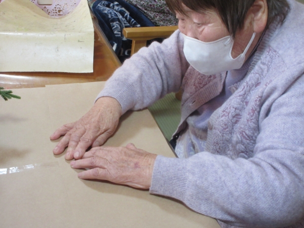 折りたたんだクラフト紙をくしゅくしゅにします。