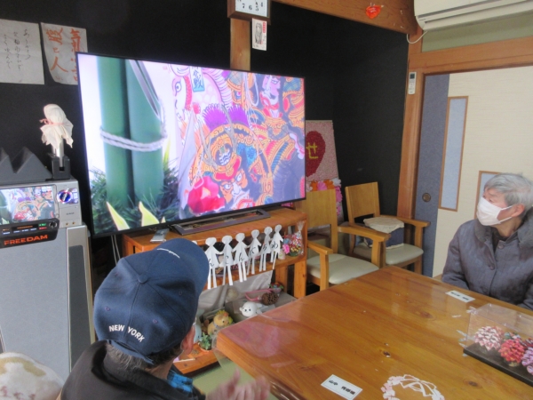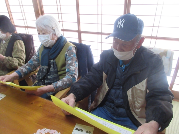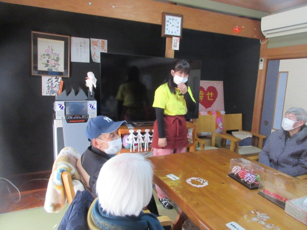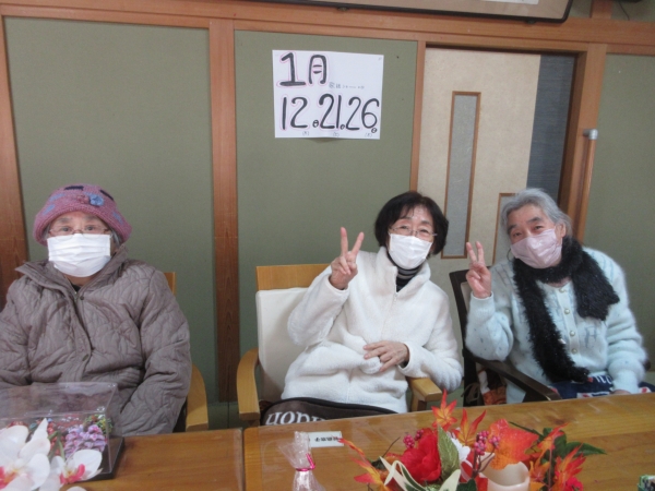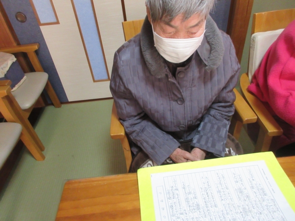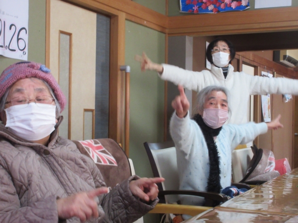口腔体操を兼ねて「お正月」と「雪」歌います。