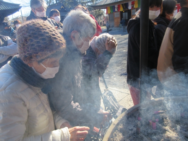 お線香の煙を、頭になすりつけます。