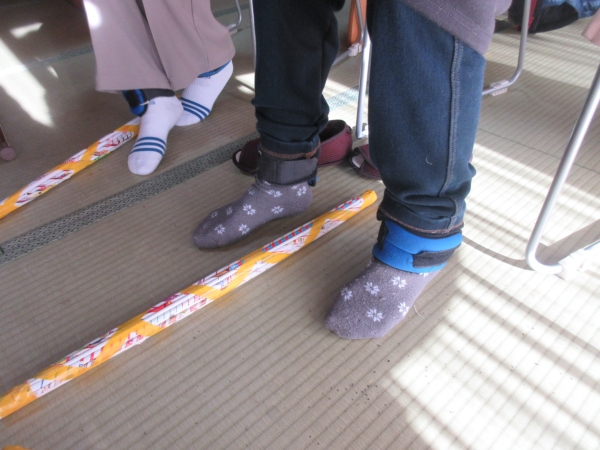 足に重りを付け機能訓練を行います。