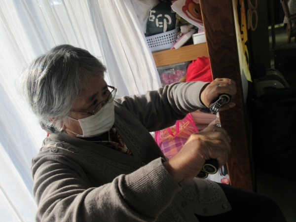 ふちどりをして几帳面にぬる母。