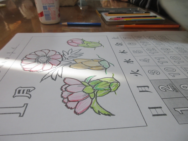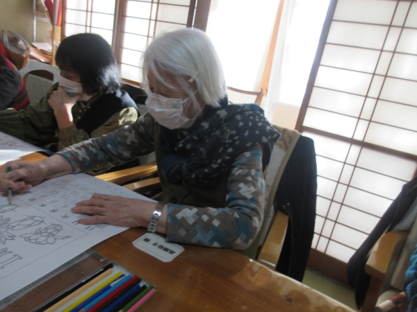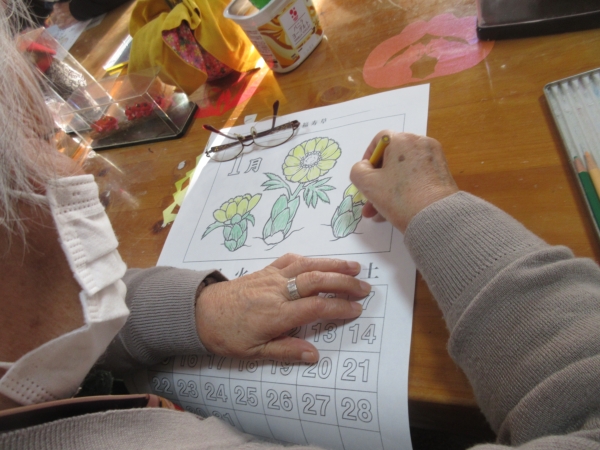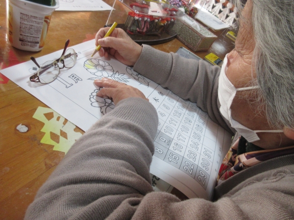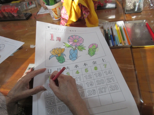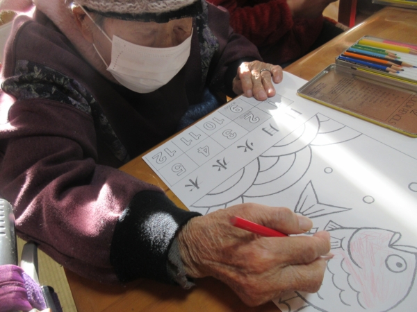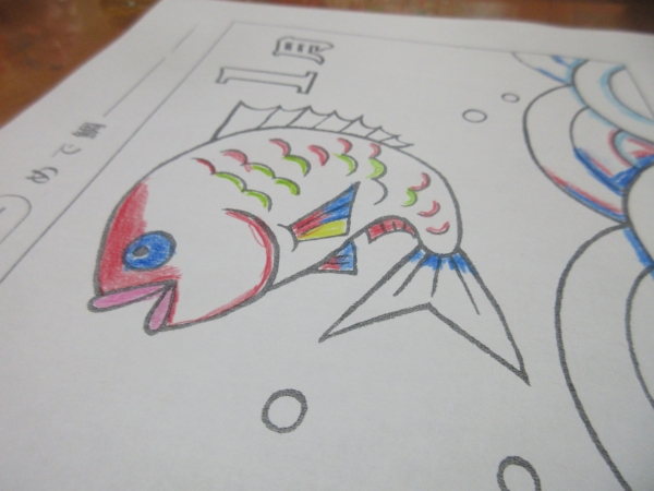 「めでたいわね~」と鯛のぬりえを選んだ母。