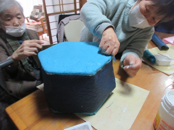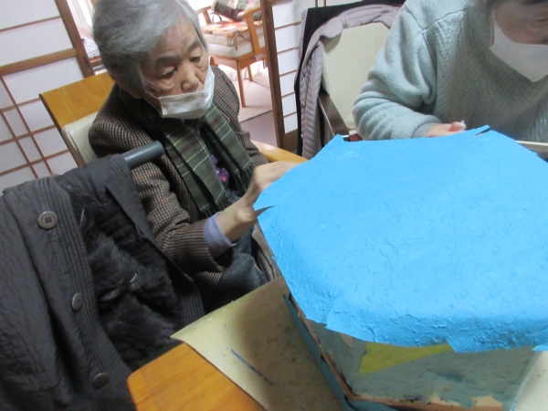 綺麗な色の和紙を貼って
