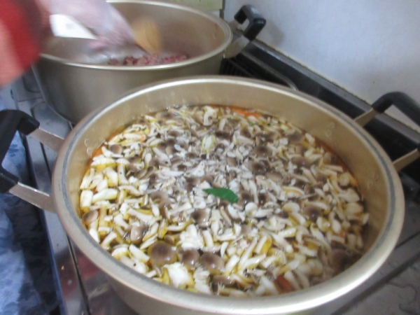 煮込んでいた野菜が火が通ったので、味付けをしていきます。