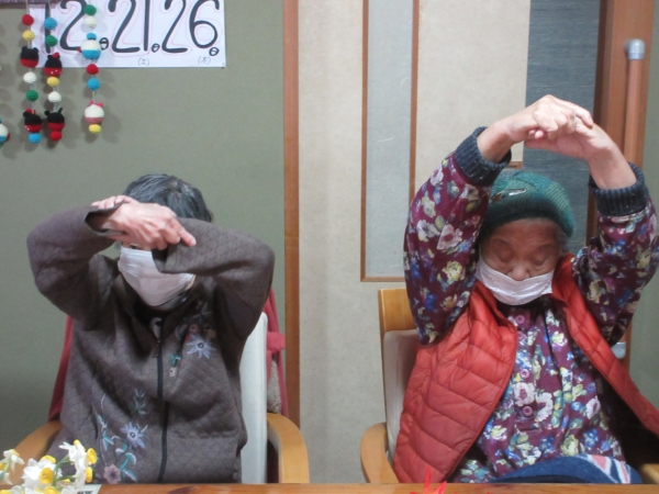 「寝たきりになりたくないから、頑張るよー」と張り切って体操をします。