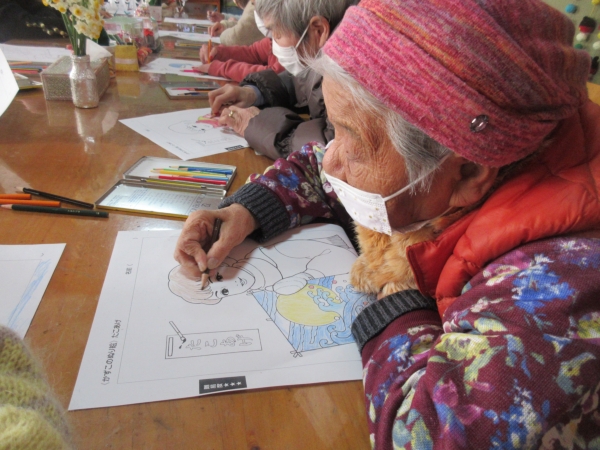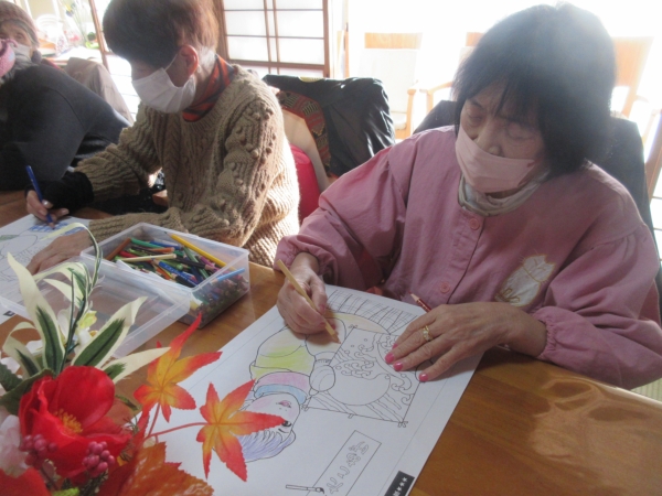 色合いを考えながら、個性豊かに、特色ある塗り絵