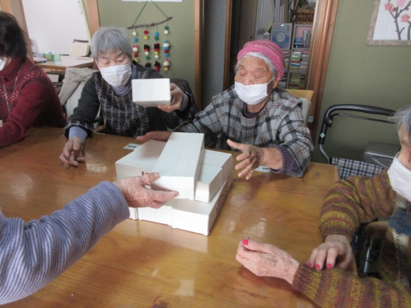 こんなに高く積まれ、グラグラしていつ倒れるか母達が心配そうに眺めていました。