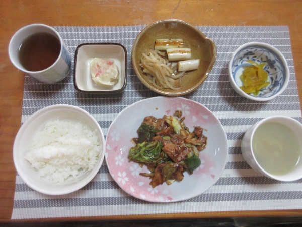 回鍋肉・ネギ焼き・モヤシのナムル・シュウマイ・卵スープ