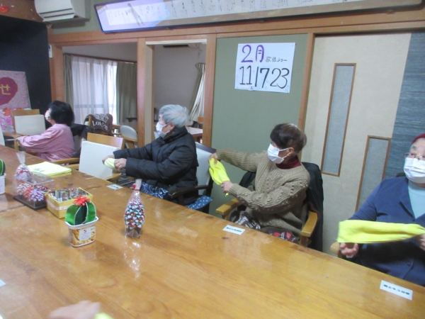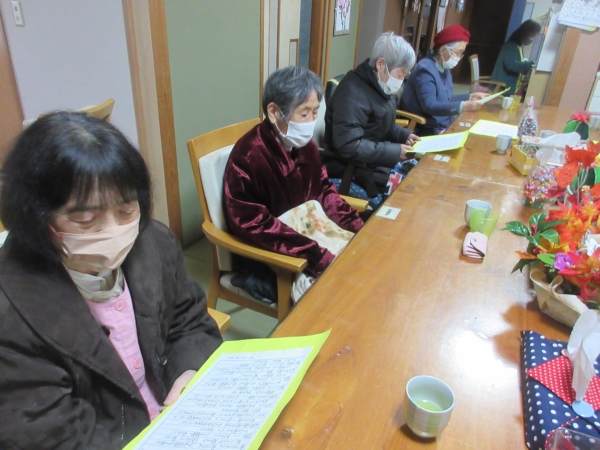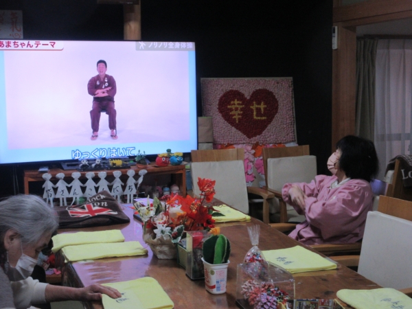 口腔体操、季節感を感じるよう「ちょうちょ」と「春よ来い」を皆様で合唱します