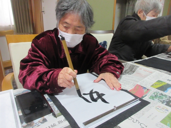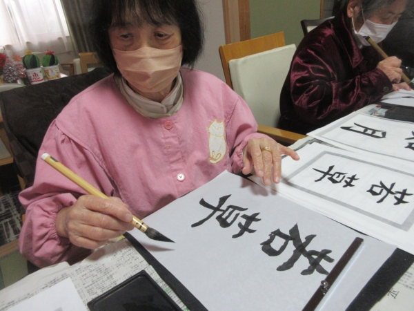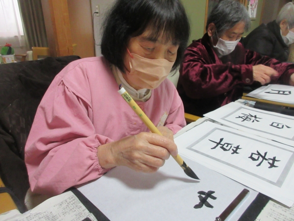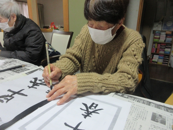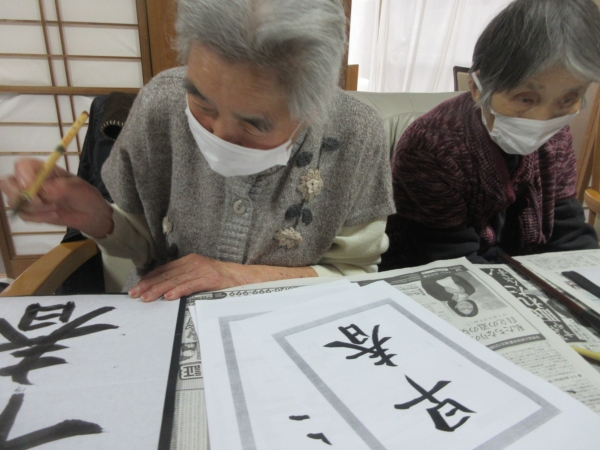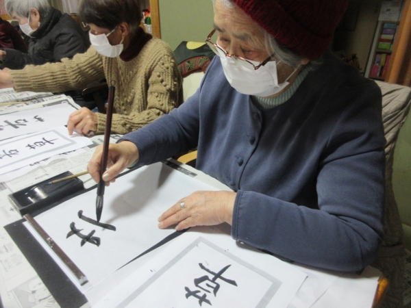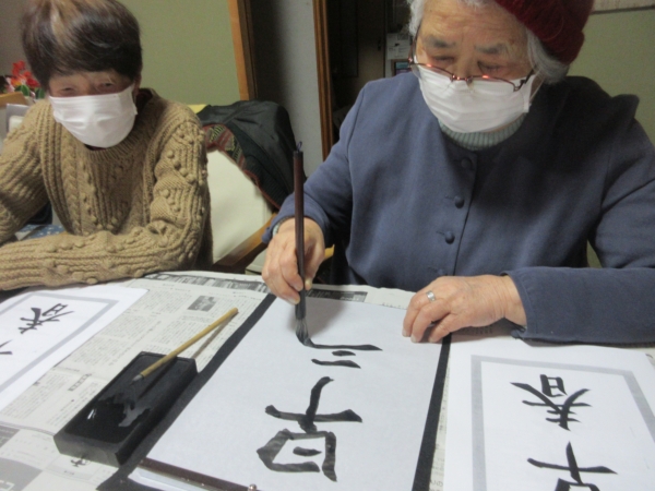 「難しいわね」と言いながらも一生懸命取り組む母達。