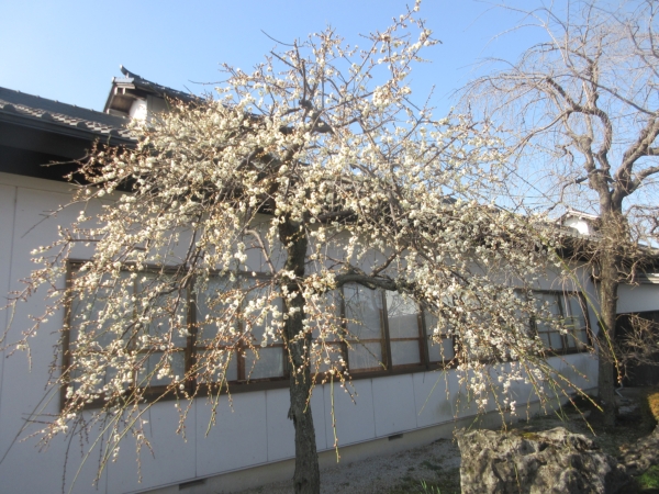 幸せの幸望庵は梅や蝋梅など綺麗な花達が母や父たちを出迎えてくれます。