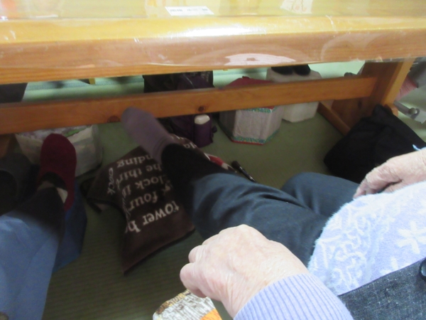 立ってやれる母達は間隔をあけてやっています。のびのび~
