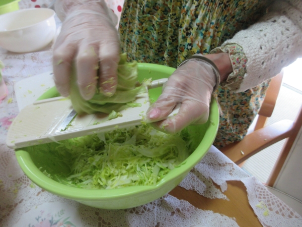 春キャベツなので柔らかくてちょっと切りにくいかなぁ・・・