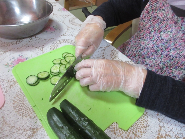 母は、得意そうに3本のきゅうりをアッと言う間に切ってしまいました。